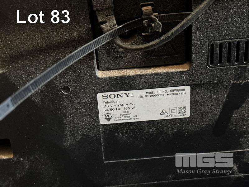 SONY BRAVIA 60" LCD TV, MODEL KDL-60W600B WITH REMOTE & WALL MOUNT BRACKET (NO STAND) S/N:2660835