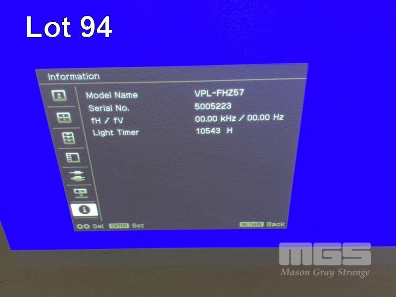 LASER PROJECTOR, SONY VPL-FHZ57 WUXGA 3LCD, 4,100 LUMENS, HDMI INPUT, 10,543 HOURS SHOWING (NO REMOTE) S/N:5005223