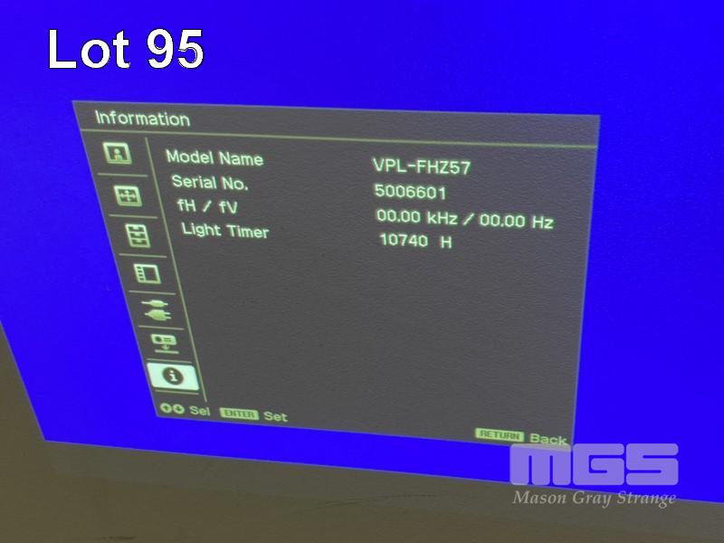 LASER PROJECTOR, SONY VPL-FHZ57 WUXGA 3LCD, 4,100 LUMENS, HDMI INPUT, 10,740 HOURS SHOWING (NO REMOTE) S/N:5006601