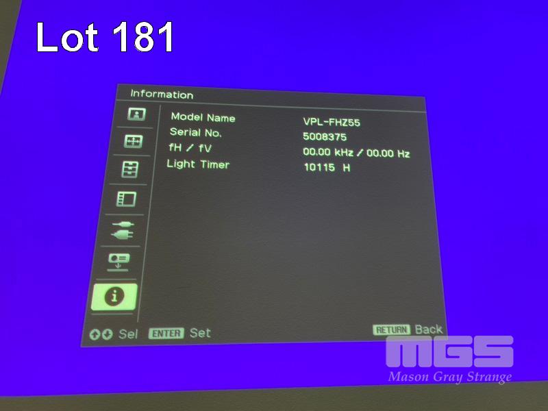 LASER PROJECTOR, SONY VPL-FHZ55 WUXGA 3LCD, 4,000 LUMENS, HDMI INPUT, 10,115 HOURS SHOWING (NO REMOTE) S/N:5008375