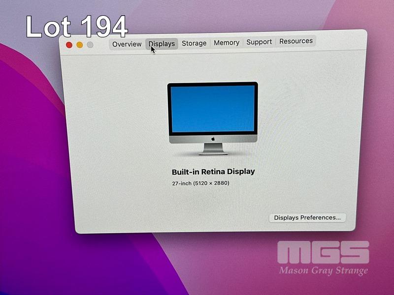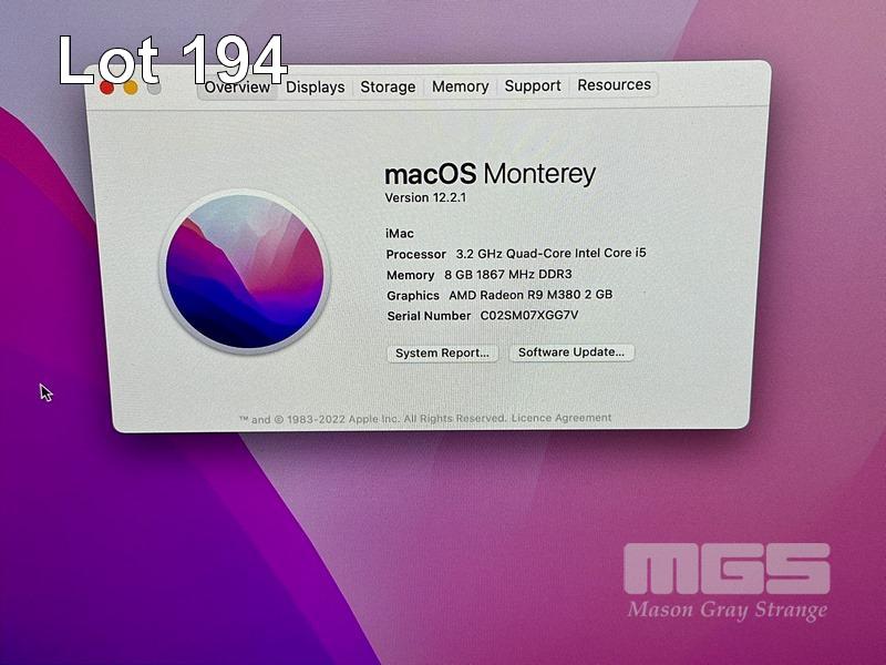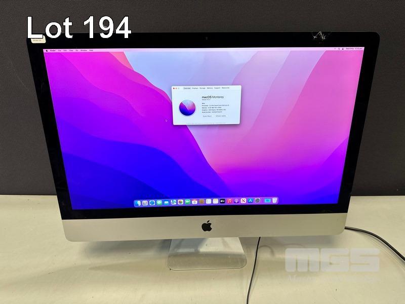 APPLE iMAC (A1419), CORE i5 6500 (6TH GEN) @ 3.2GHz, 8GB DDR3 RAM, 512GB SSD, BUILT-IN 27" RETINA DISPLAY (5120x2880), 2GB AMD RADEON R9 M380 VIDEO, Wi-Fi, BLUETOOTH, MAC OS 12 INSTALLED (NO KEYBOARD, NO MOUSE) (NOTE: DAMAGED SCREEN) S/N:C02SM07XGG7V