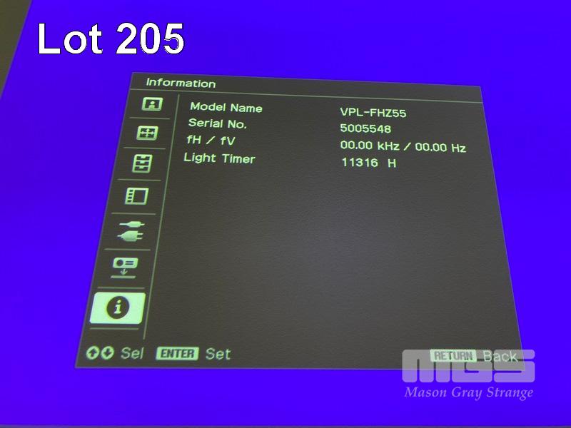 LASER PROJECTOR, SONY VPL-FHZ55 WUXGA 3LCD, 4,000 LUMENS, HDMI INPUT, 11,316 HOURS SHOWING (NO REMOTE) S/N:5005548
