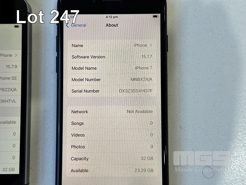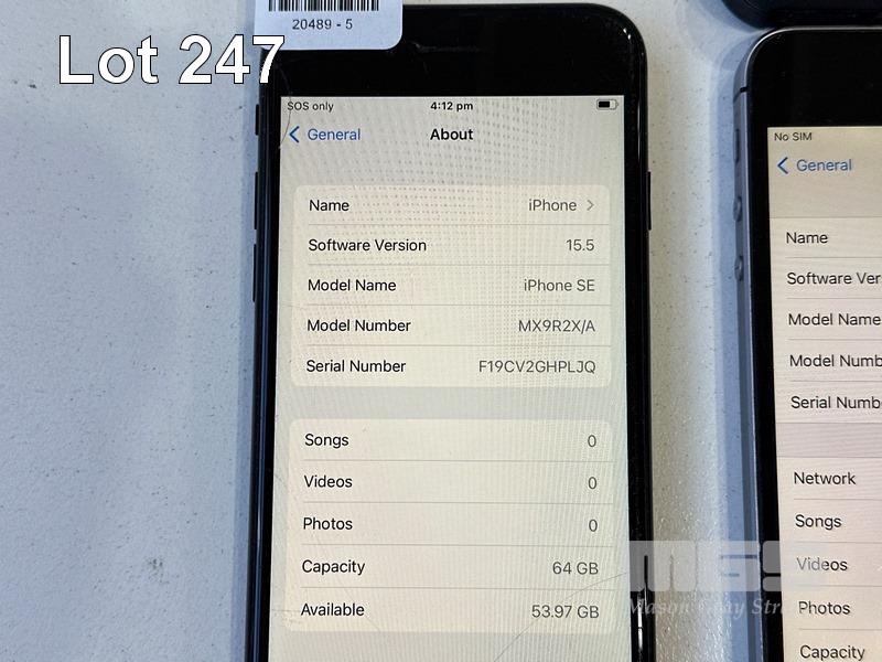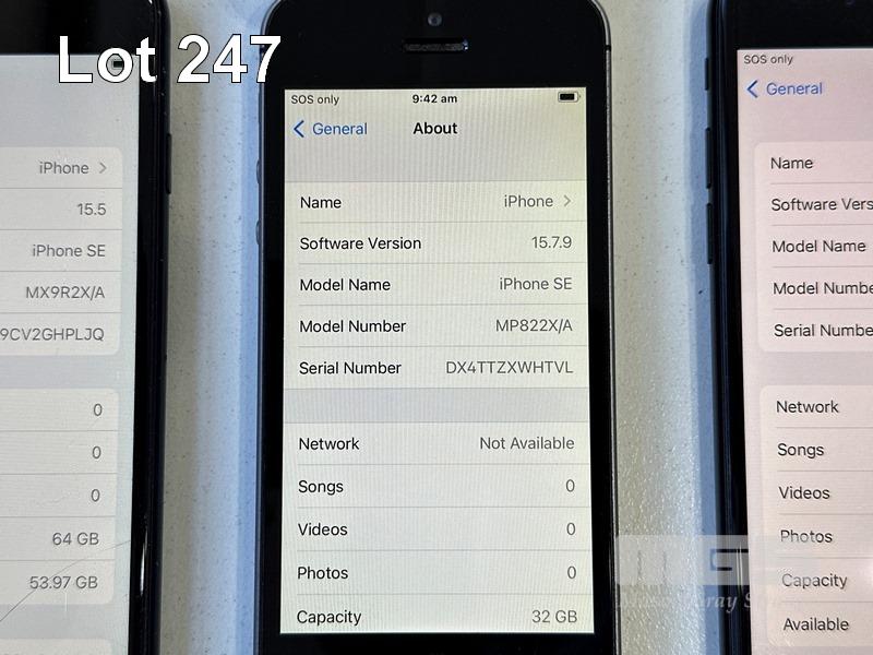 APPLE iPHONE SE, 64GB, MX9R2X/A (DAMAGED) APPLE iPHONE SE, 32GB, MP822X/A APPLE iPHONE 7, 32GB, MN8X2X/A (NO CABLES, NO CHARGERS)