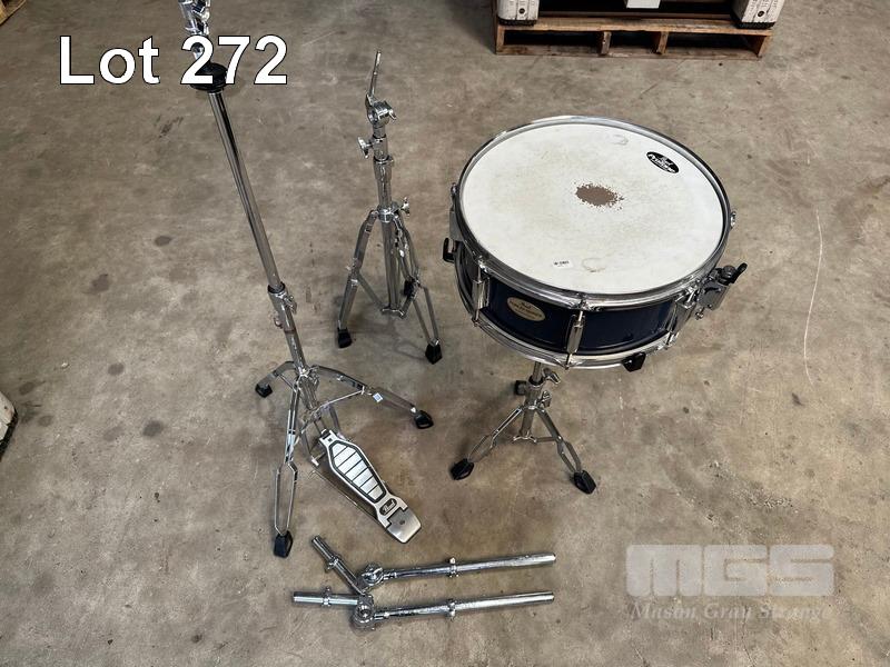 PEARL FORUM SERIES DRUM SNARE WITH STAND & INCOMPLETE DRUM STANDS
