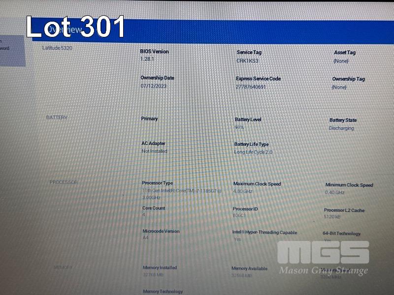 LAPTOP, DELL LATITUDE 5320, CORE i7 1185G7 (11TH GEN) @ 3GHz, 32GB DDR4 RAM, 512GB NVMe M.2 SSD, 13.3" WIDESCREEN (1366x768), INTEL IRIS Xe GRAPHICS, Wi-Fi, BLUETOOTH, WINDOWS 11 PRO INSTALLED, USB-C POWER SUPPLY & CARRY BAG S/N:CRK1KS3