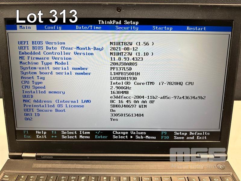 LAPTOP, LENOVO THINKPAD P51 MOBILE WORKSTATION, TYPE 20HJ, CORE i7 7820HQ (7TH GEN) @ 2.9GHz, 16GB DDR4 RAM, 512GB NVMe M.2 SSD, 15.6" WIDESCREEN (1920x1080), 4GB NVIDIA QUADRO M2200 VIDEO, Wi-Fi, BLUETOOTH, WINDOWS 10 PRO INSTALLED (NO POWER SUPPLY) (NOTE: MARKS & SPOTS ON SCREEN) S/N:PF137L5D
