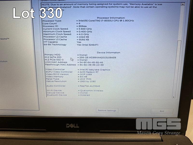 LAPTOP, DELL LATITUDE 3590, CORE i7 8550U (8TH GEN) @ 1.8GHz, 8GB DDR4 RAM, 256GB M.2 SSD, 15.6" WIDESCREEN (1920x1080), Wi-Fi, BLUETOOTH, WINDOWS 11 PRO INSTALLED, POWER SUPPLY & CARRY BAG S/N:JYF4YR2