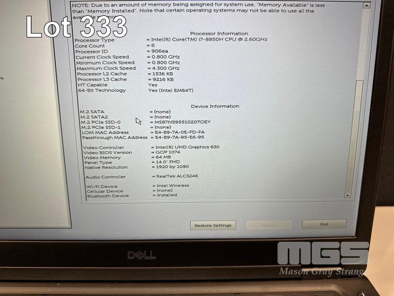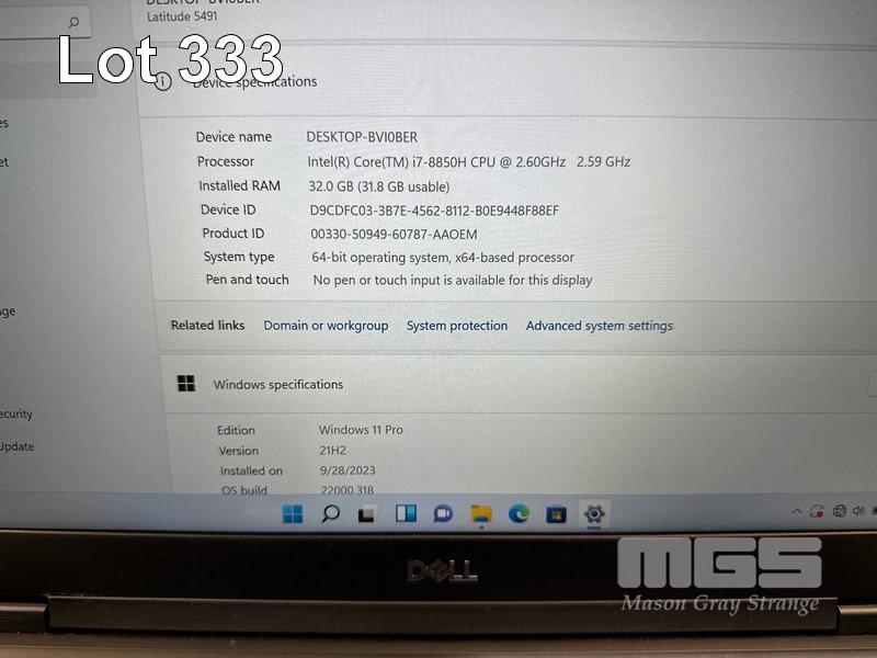 LAPTOP, DELL LATITUDE 5491, CORE i5 8850H (8TH GEN) @ 2.6GHz, 32GB DDR4 RAM, 1TB NVMe M.2 SSD, 14" WIDESCREEN (1920x1080), 2GB NVIDIA GEFORCE MX130 VIDEO, INTEL UHD GRAPHICS 630, Wi-Fi, BLUETOOTH, WINDOWS 11 PRO INSTALLED, POWER SUPPLY & CARRY BAG (NOTE: BATTERY NOT HOLDING CHARGE) S/N:78MQRQ2