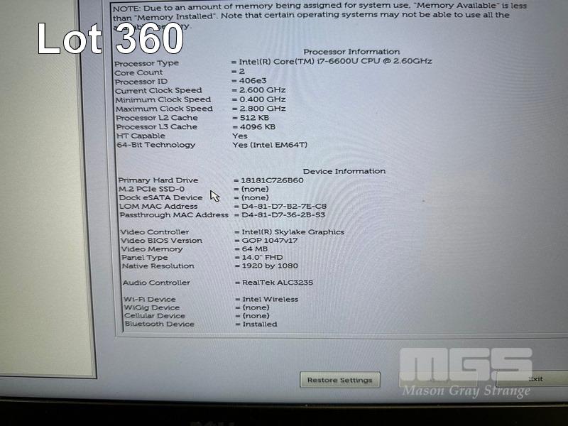 LAPTOP, DELL LATITUDE E7470, CORE i7 6600U (6TH GEN) @ 2.6GHz, 16GB DDR4 RAM, 512GB M.2 SSD, 14" WIDESCREEN (1920x1080), INTEL HD GRAPHICS 520, Wi-Fi, BLUETOOTH, WINDOWS 10 HOME INSTALLED (NO POWER SUPPLY) (NOTE: MARKS ON SCREEN) S/N:4QJ0RF2