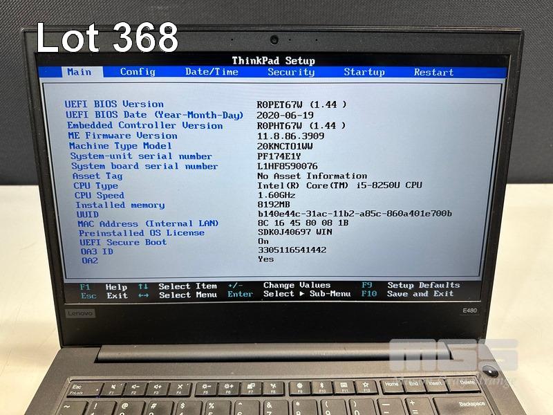 LAPTOP, LENOVO THINKPAD E480, TYPE 20KN, CORE i5 8250U (8TH GEN) @ 1.6GHz, 8GB DDR4 RAM, 256GB NVMe M.2 SSD, 14" WIDESCREEN (1920x1080), INTEL HD VIDEO, Wi-Fi, BLUETOOTH, WINDOWS 11 PRO INSTALLED & USB-C POWER SUPPLY (NOTE: MINOR MARKS ON SCREEN) S/N:PF174E1Y