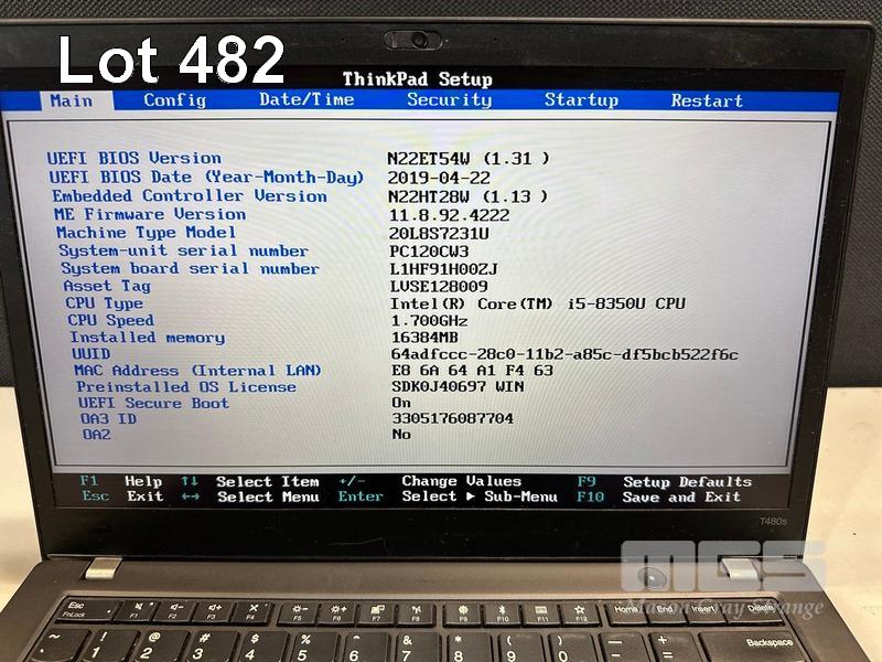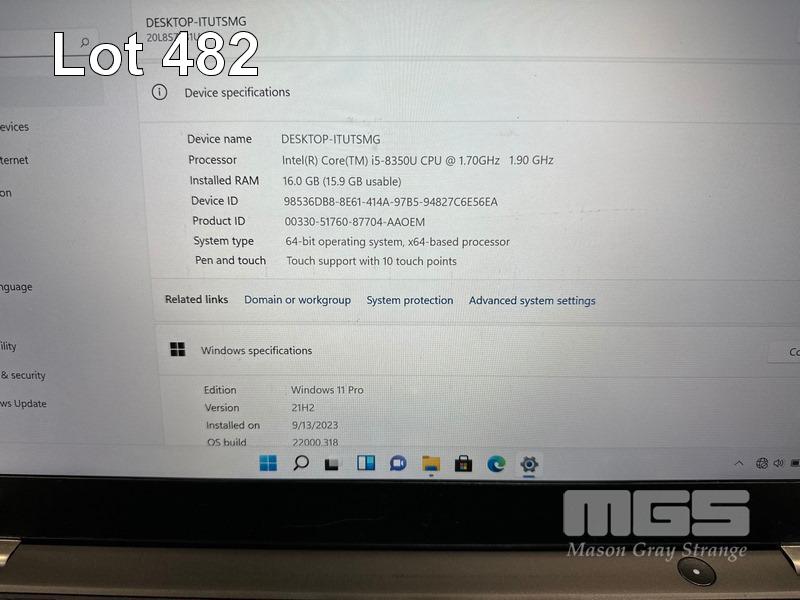 LAPTOP, LENOVO THINKPAD T480s, TYPE 20L8, CORE i5 8350U (8TH GEN) @ 1.7GHz, 16GB DDR4 RAM, 256GB NVMe M.2 SSD, 14" TOUCHSCREEN (1920x1080), INTEL HD VIDEO, Wi-Fi, BLUETOOTH, WINDOWS 11 PRO INSTALLED (NO USB-C POWER SUPPLY) (NOTE: MINOR MARKS ON SCREEN) S/N:PC120CW3