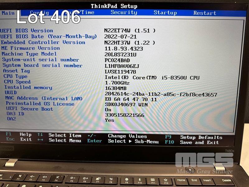 LAPTOP, LENOVO THINKPAD T480s, TYPE 20L8, CORE i5 8350U (8TH GEN) @ 1.7GHz, 16GB DDR4 RAM, 256GB NVMe M.2 SSD, 14" TOUCHSCREEN (1920x1080), INTEL HD VIDEO, Wi-Fi, BLUETOOTH, WINDOWS 11 PRO INSTALLED (NO USB-C POWER SUPPLY) (NOTE: MINOR MARKS ON SCREEN) S/N:PC0Z4BAD