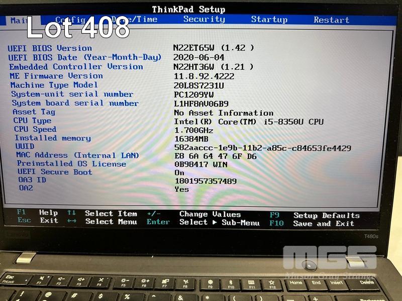 LAPTOP, LENOVO THINKPAD T480s, TYPE 20L8, CORE i5 8350U (8TH GEN) @ 1.7GHz, 16GB DDR4 RAM, 256GB NVMe M.2 SSD, 14" TOUCHSCREEN (1920x1080), INTEL HD VIDEO, Wi-Fi, BLUETOOTH, WINDOWS 11 PRO INSTALLED (NO USB-C POWER SUPPLY) (NOTE: MARKS ON SCREEN) S/N:PC1209YW