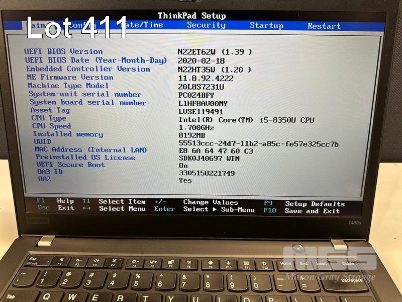 LAPTOP, LENOVO THINKPAD T480s, TYPE 20L8, CORE i5 8350U (8TH GEN) @ 1.7GHz, 8GB DDR4 RAM, 256GB NVMe M.2 SSD, 14" TOUCHSCREEN (1920x1080), INTEL HD VIDEO, Wi-Fi, BLUETOOTH, WINDOWS 11 PRO INSTALLED (NO USB-C POWER SUPPLY) (NOTE: MARKS ON SCREEN, DAMAGE TO CASING, 1 x USB-C PORT FAULTY) S/N:PC0Z4BFY