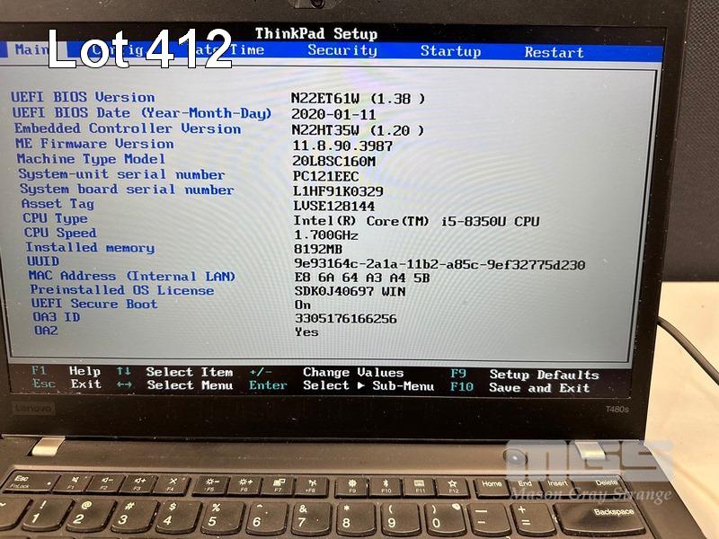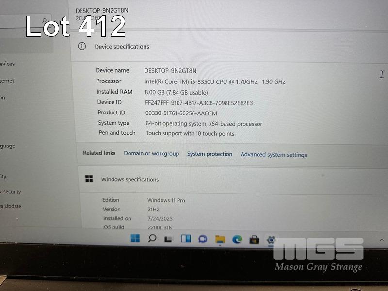 LAPTOP, LENOVO THINKPAD T480s, TYPE 20L8, CORE i5 8350U (8TH GEN) @ 1.7GHz, 8GB DDR4 RAM, 256GB NVMe M.2 SSD, 14" TOUCHSCREEN (1920x1080), INTEL HD VIDEO, Wi-Fi, BLUETOOTH, WINDOWS 11 PRO INSTALLED (NO USB-C POWER SUPPLY) (NOTE: BATTERY NOT CHARGING, TOUCHPAD FAULT, MARKS ON SCREEN) S/N:PC121EEC