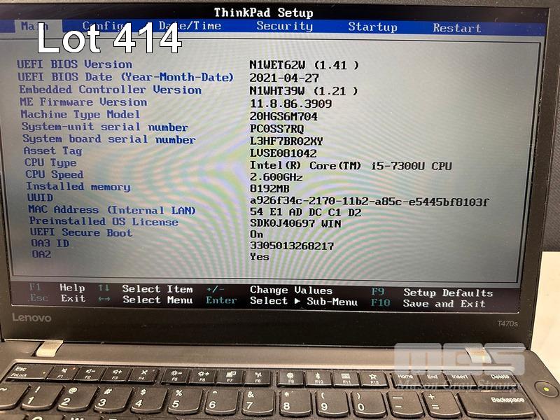 LAPTOP, LENOVO THINKPAD T470s, TYPE 20HG, CORE i5 7300U (7TH GEN) @ 2.6GHz, 8GB DDR4 RAM, 512GB NVMe M.2 SSD, 14" TOUCHSCREEN (1920x1080), INTEL HD VIDEO, Wi-Fi, BLUETOOTH, WINDOWS 10 PRO INSTALLED & POWER SUPPLY (NOTE: MARKS ON SCREEN) S/N:PC0SS7RQ