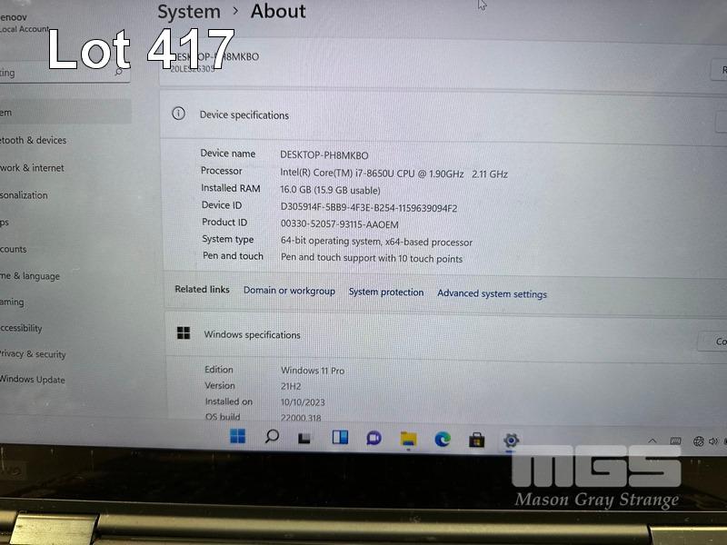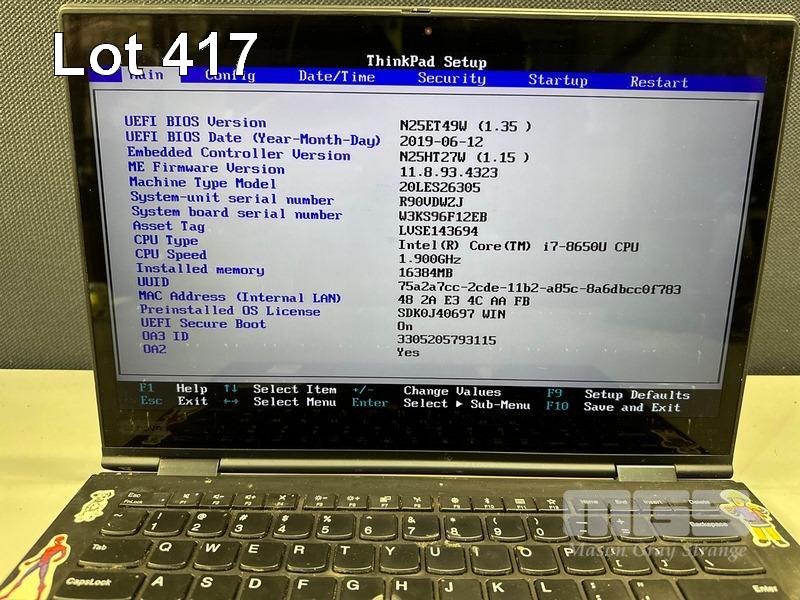 LAPTOP, LENOVO THINKPAD X1 YOGA, TYPE 20LE, CORE i7 8650U (8TH GEN) @ 1.9GHz, 16GB DDR4 RAM, 512GB NVMe M.2 SSD, 14" TOUCHSCREEN (1920x1080), INTEL UHD GRAPHICS, Wi-Fi, BLUETOOTH, WINDOWS 11 PRO INSTALLED (NO USB-C POWER SUPPLY) (NOTE: POOR CONDITION, MARKS ON SCREEN) S/N:R90VDWZJ