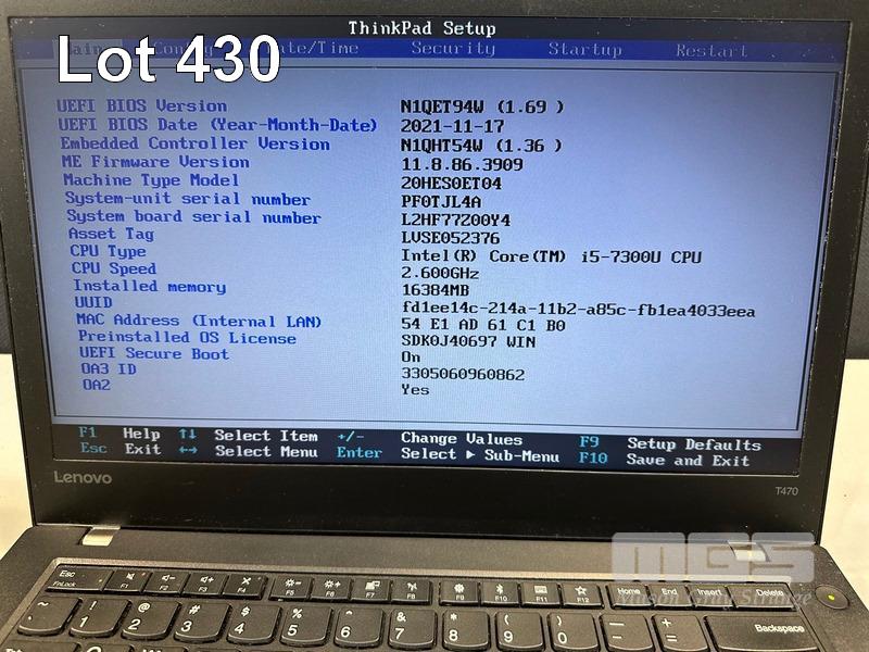 LAPTOP, LENOVO THINKPAD T470, TYPE 20HE, CORE i5 7300U (7TH GEN) @ 2.6GHz, 16GB DDR4 RAM, 256GB NVMe M.2 SSD, 14" WIDESCREEN (1366x768), INTEL HD VIDEO, Wi-Fi, BLUETOOTH, WINDOWS 10 PRO INSTALLED & POWER SUPPLY S/N:PF0TJL4A