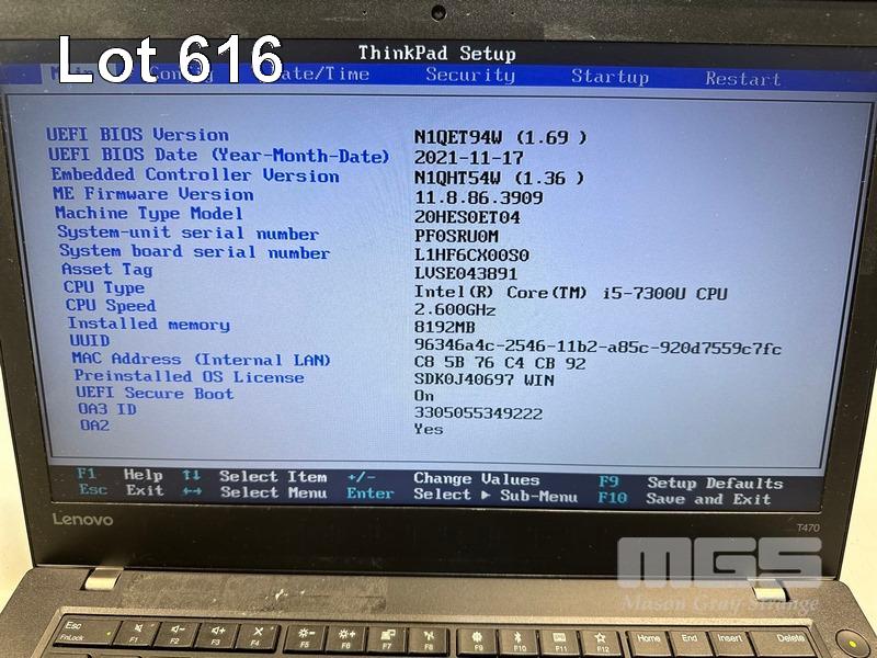 LAPTOP, LENOVO THINKPAD T470, TYPE 20HE, CORE i5 7300U (7TH GEN) @ 2.6GHz, 8GB DDR4 RAM, 256GB NVMe M.2 SSD, 14" WIDESCREEN (1366x768), INTEL HD VIDEO, Wi-Fi, BLUETOOTH, WINDOWS 10 PRO INSTALLED & POWER SUPPLY (NOTE: MARKS ON SCREEN) S/N:PF0SRU0M