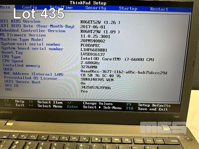 LAPTOP, LENOVO THINKPAD T460, TYPE 20FM, CORE i7 6600U (6TH GEN) @ 2.6GHz, 32GB DDR3 RAM, 275GB SSD, 14" WIDESCREEN (1920x1080), INTEL HD VIDEO, Wi-Fi, BLUETOOTH, WINDOWS 10 PRO INSTALLED & POWER SUPPLY S/N:PC0EAPEC