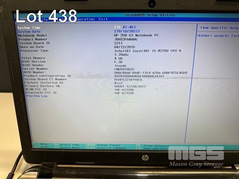 LAPTOP, HP 250 G3, CORE i5 4210U (4TH GEN) @ 1.7GHz, 4GB DDR3 RAM, 250GB SSD, DVD-RW, 15.6" WIDESCREEN, INTEL HD VIDEO, Wi-Fi, BLUETOOTH, WINDOWS 10 PRO INSTALLED & POWER SUPPLY (NOTE: MARKS ON SCREEN, BATTERY NOT CHARGING) S/N:CND5010DZC