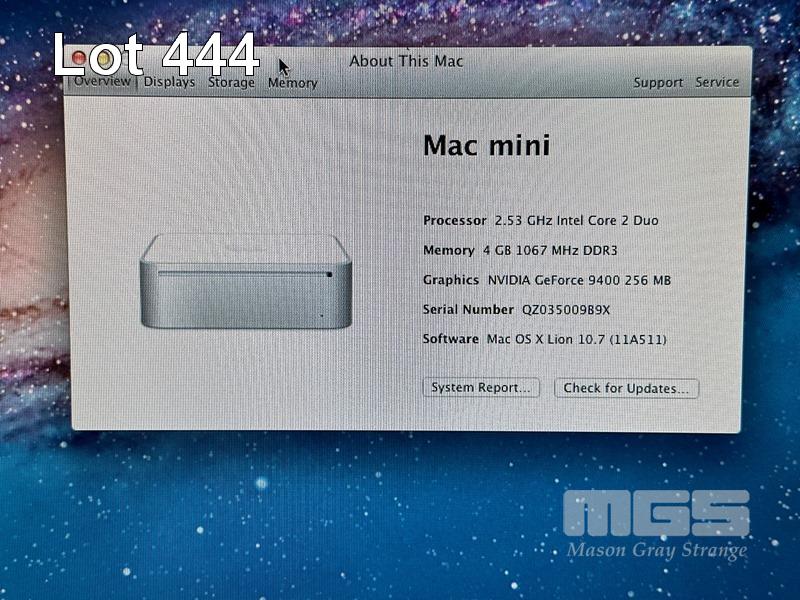 APPLE iMAC (A1311), CORE i5 2400S (2ND GEN) @ 2.5GHz, 8GB DDR3 RAM, 500GB SATA HDD, DVD-RW, BUILT-IN 21.5" DISPLAY (1920x1080), Wi-Fi, BLUETOOTH, MAC OS 10.13 INSTALLED, KEYBOARD & MOUSE APPLE MAC MINI (A1283), CORE 2 DUO P8700 @ 2.53GHz, 4GB DDR3 RAM, 500GB SATA HDD, 120GB SATA HDD, MAC OS 10.7 INSTALLED & POWER SUPPLY S/N:C02G5DL6DHJF, QZ035009B9X