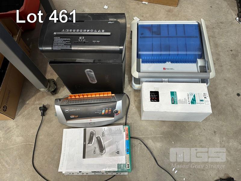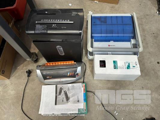 OFFICE PRO PAPER SHREDDER, GBC HEATSEAL H212 LAMINATOR, REXEL BINDER