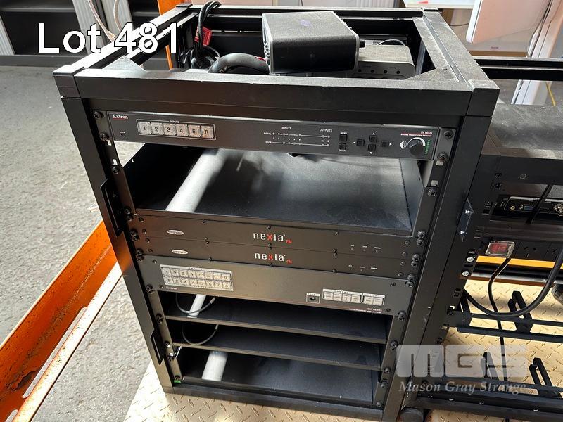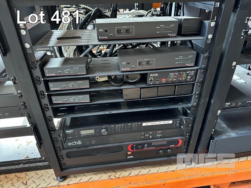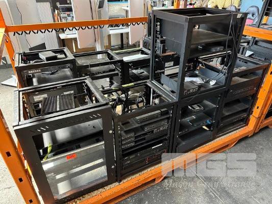 10 x DATA RACK FRAMES WITH CONTENTS VARIOUS AV EQUIPMENT INC EXTRON SWITCHERS, SURE ULXD4D DIGITAL WIRELESS RECEIVER, ECHO 360, JBL CSA 280Z DRIVECORE, AUSTRALIAN MONITOR AMC 1202P AMPLIFIER, AMX EQUIPMENT, NEXIA VC BIAMP SYSTEMS PRESENTATION MIXERS, RACKMOUNT POWERBOARDS, SONY PROJECTOR ETC