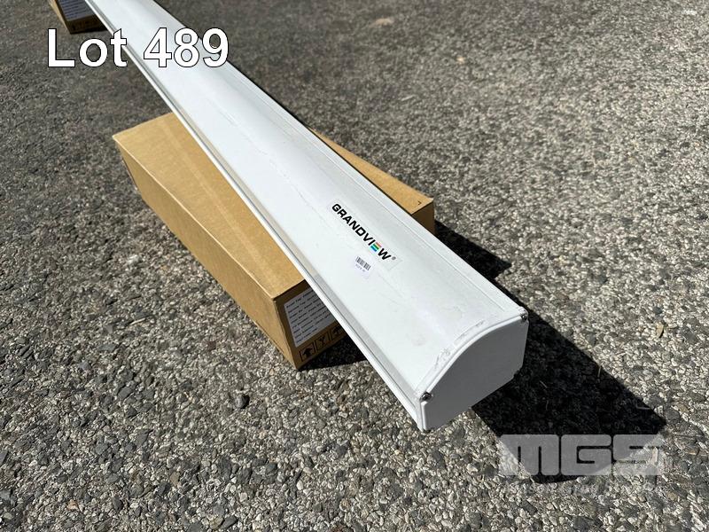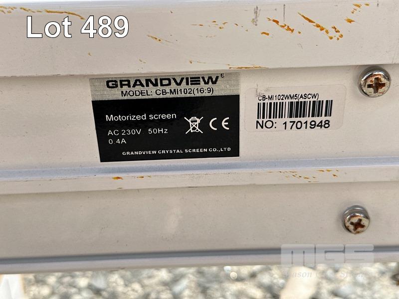 PROJECTION SCREEN, MOTORISED, GRANDVIEW, MODEL CB-MI102, 250cm WIDTH, 240v (NOTE: CONTROLLER REQUIRED, CABLE CUT) S/N:1701948