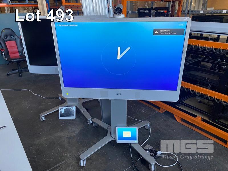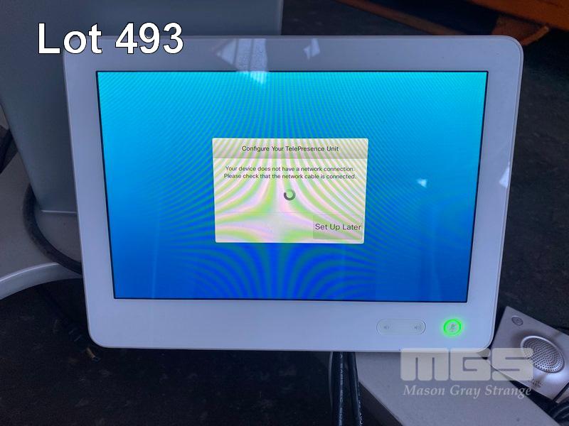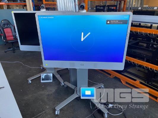 CISCO TELEPRESENCE MX300 VIDEO CONFERENCE SYSTEM WITH 55" LCD MONITOR ON MOBILE STAND, CAMERA, TABLE MICROPHONE & CONTROL PANEL (NOTE: SCRATCHES ON SCREEN)