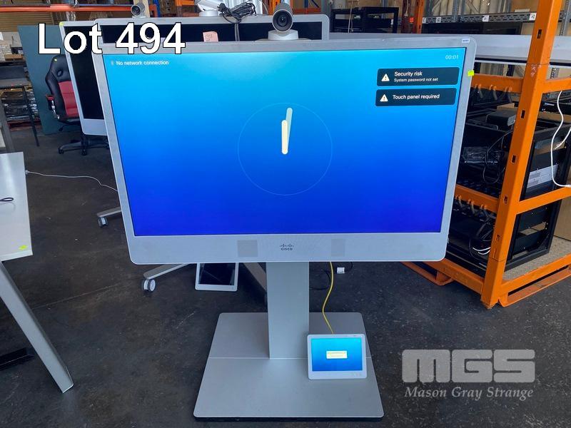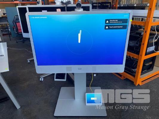 CISCO TELEPRESENCE MX300 VIDEO CONFERENCE SYSTEM WITH 55" LCD MONITOR ON FIXED STAND, CAMERA & CONTROL PANEL (NOTE: SCRATCHES ON SCREEN)