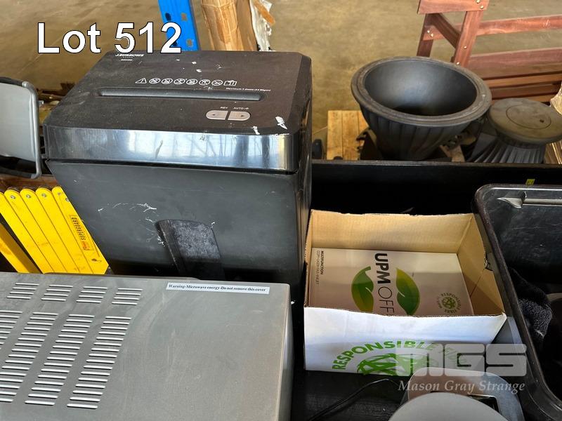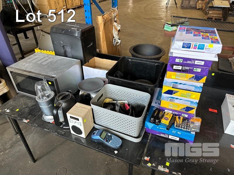 MICROWAVE, PAPER SHREDDER, NUTRIBULLET, KETTLE, TOASTER, PLATES, STATIONERY, A3/A4 PAPER REAMS ETC
