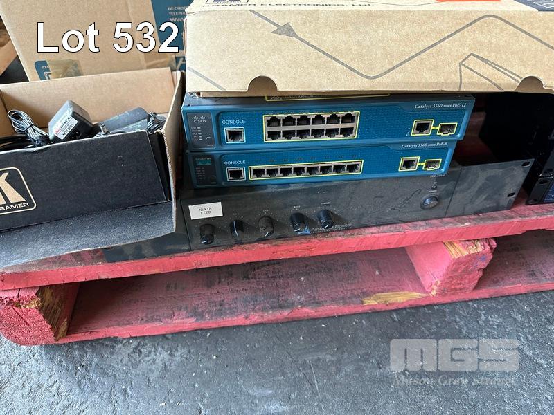 1 x PALLET ASST AV EQUIPMENT INC REVOLABS, DATAPROBE iBOOTBAR, RETRACTABLE HDMI CABLES, CISCO SWITCHES, WILLIAMS SOUND, CABLES ETC