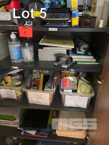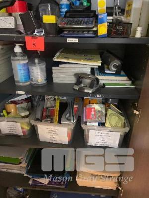 CONTENTS OF CUPBOARD INCLUDING OFFICE STATIONERY WITH SONY CD PLAYER