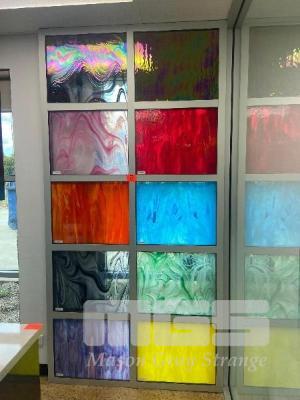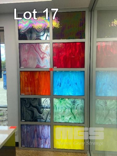 COLOURED GLASS DISPLAY UNIT, ALUMINIUM