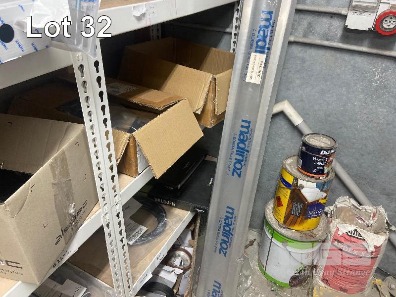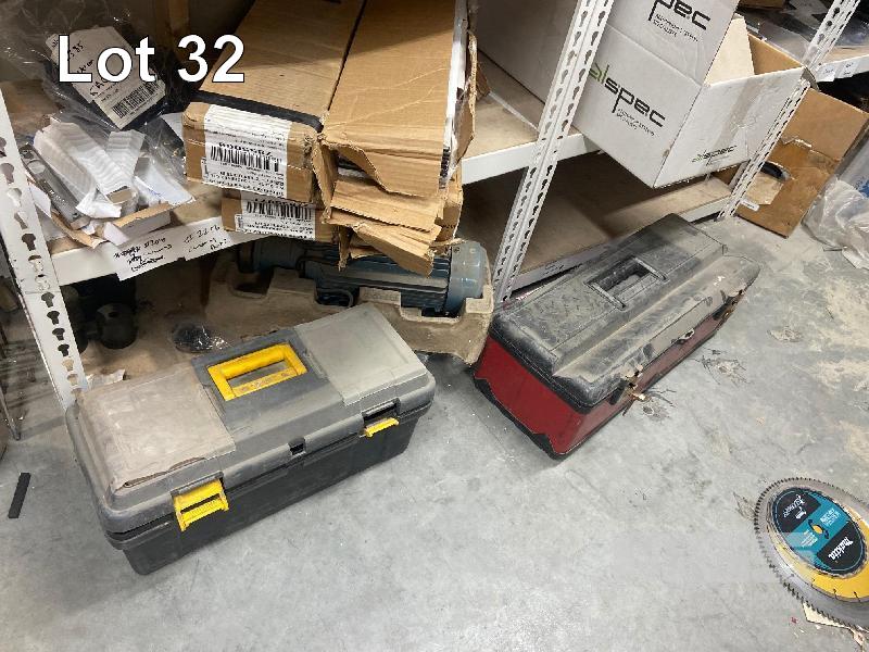 CONTENTS 3 x RACKS INCLUDING SAFETY FIRST AID KITS, ELEC MOTOR, DOOR HANDLES, SOFT CLOSE HINGES, ELECTRIC CABLE, AIR HOSE & TOOL BOXES