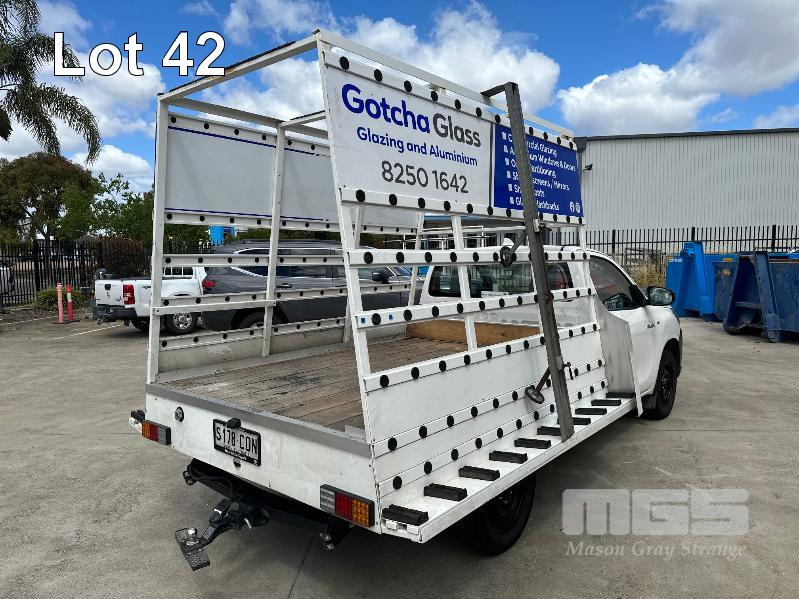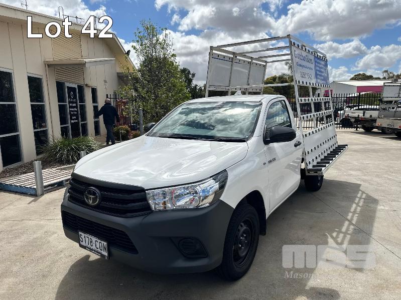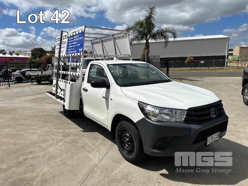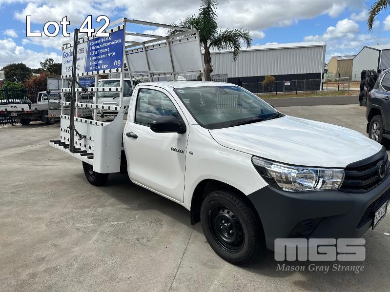 2022 TOYOTA HILUX SINGLE CAB REG: S178 CON VIN: MR0CX3CBX04330732 ODO: 29,269kms SHOWING 2.7 LITRE PETROL, 5 SPEED MANUAL TRANSMISSION, TOW BAR, DISPLAY SCREEN, DOUBLE SIDED GLASS RACK 2400 (L) x 1850mm (H) TIMBER TRAY GENUINE SEAT COVERS (WITH PAPERS, WITH 1 KEY/S, WITH OWNER'S MANUAL, WITH SERVICE BOOKS)
