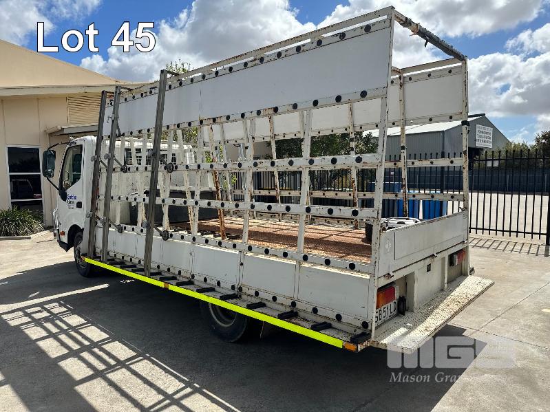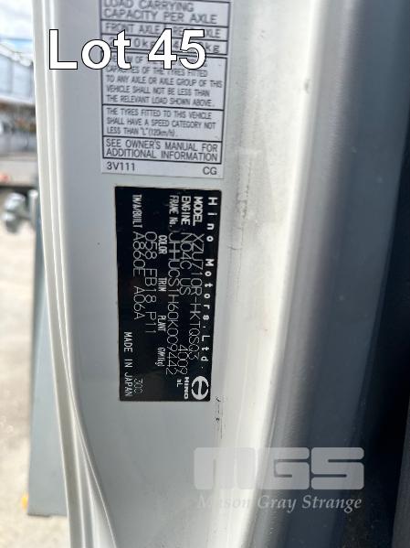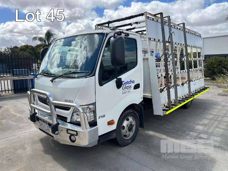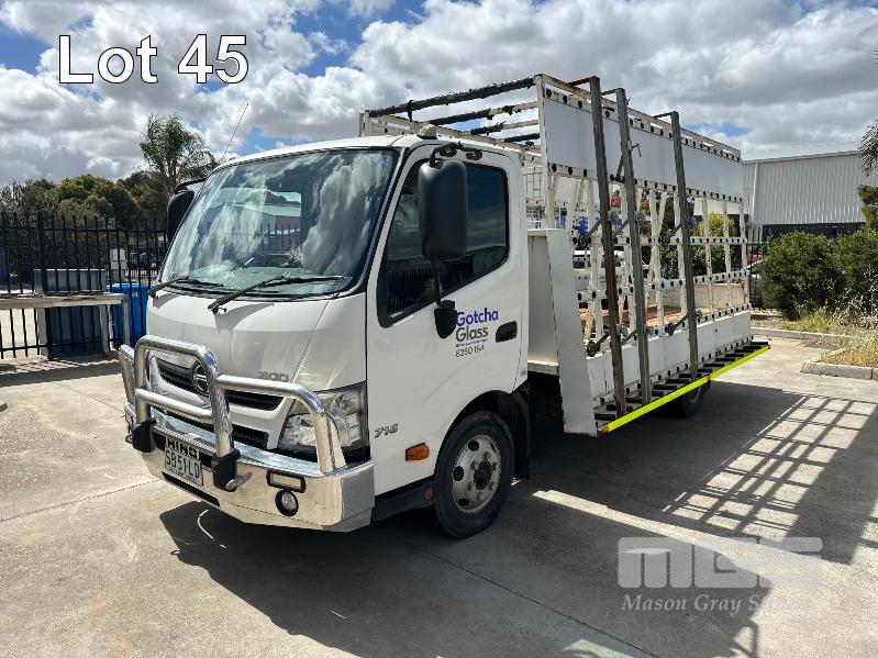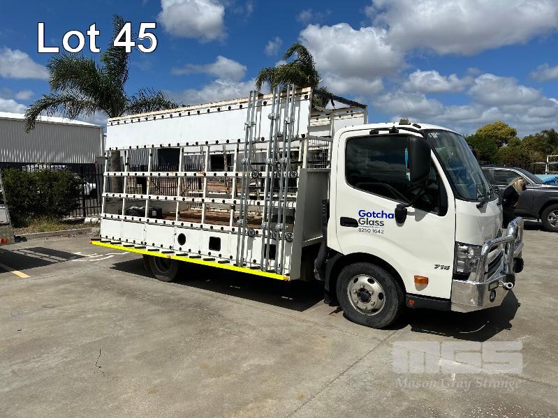 2014 HINO 716 XZU710R-HKTQ-S03 REG: SB 51 LD VIN: JHHUCS1H60K009442 ENG: N04CUS16915 ODO: 181,131kms SHOWING AUTOMATIC TRANSMISSION, DIESEL, 3 SEAT, GVM: 6,500kg ALLOY BULL BAR DOUBLE SIDED GLASS RACK 4300 (L) x 2200mm (H) NEW SPARE TYRE REAR STEP (WITH PAPERS, WITH 1 KEY/S, WITH OWNER'S MANUAL, WITH SERVICE BOOKS)