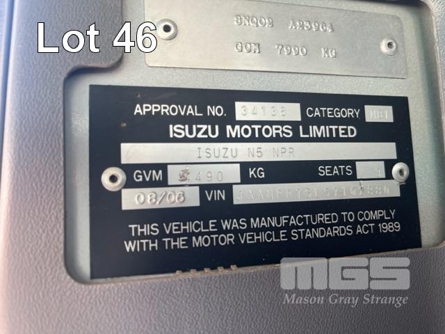 2006 ISUZU 200 NPR75 4HK1-TCN REG: S955BNA (SA) (EXPIRED) VIN: JAANPR75L57102880 ENG: 4HK1412736 ODO: 431,411kms SHOWING 5.2L, MANUAL, DIESEL, WHITE, AIR BAG, AIR CON, RECENTLY REPLACED ENGINE AND HAD MAJOR SERVICE TOTALING $12,745 (INVOICES AVALIABLE UPON REQUEST) ALLOY BULL BAR DOUBLE SIDED GLASS RACK ON REMOVEABLE SKID 3740 x 1900mm (H) ALUMINIUM CHECKERPLATE TOOL BOX 2310 x 650 x 830mm (H) GVM: 4490kg (WITH PAPERS, NO OWNER'S MANUAL, NO SERVICE BOOKS)