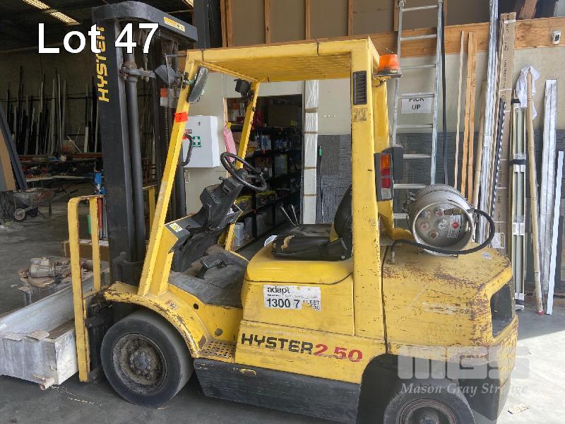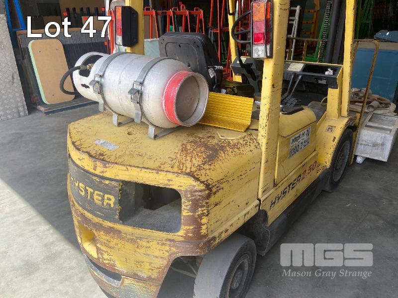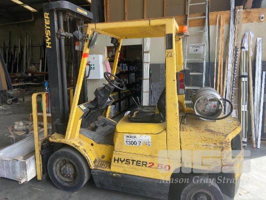 FORKLIFT, HYSTER MOD: H2.5XM LPG SOLID TYRES 20,733 hours 2 STAGE MAST RUNS AND DRIVES WELL.