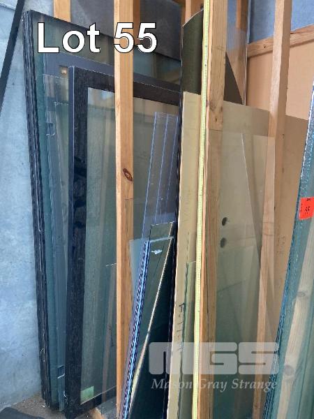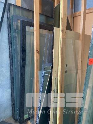 25 (APPROX) ASSORTED GLASS SHEETS & MIRRORS, VARIOUS SIZES CLEAR, STAINED, PATTERNED, 6 x ALUMINIUM FRAMED GLASS