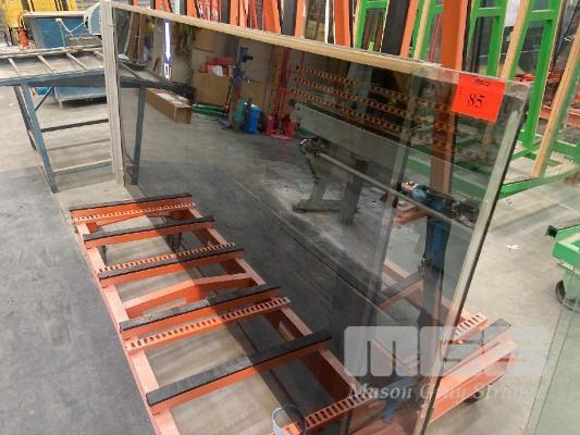 2 x PANELS THICK GLASS, DARK & DOOR SLIDE FITTINGS.