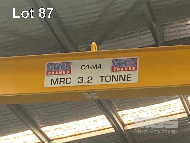 OVERHEAD CRANE, GMCC CM-M4 3.2 TONNE CAPACITY REMOTE PENDANT 27m TRAVEL, UNDERSLUNG 13m SPAN APPROX COMPLETELY DEMOUNTABLE FREESTANDING 150mm UC UPRIGHT