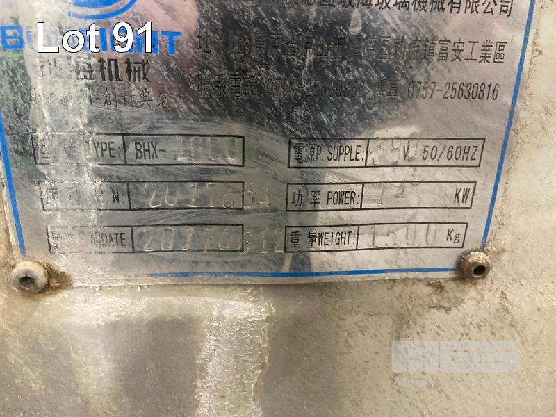 BOHEIGHT GLASS PANEL WASHER. TYPE: BHX-1G60 S/NO: 201765A DOM: 2017 1,500kg 415V WITH 6 NEW BRUSHES, NEW SPARES, ROLLERS & BEARINGS.