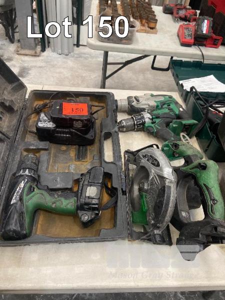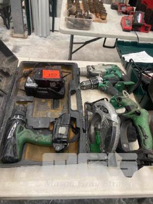 HITACHI CORDLESS POWER TOOLS INCLUDING, HAMMER DRILL, 2 x DRILLS & SAW WITH CHARGER & 2 x BATTERIES WITH CASE