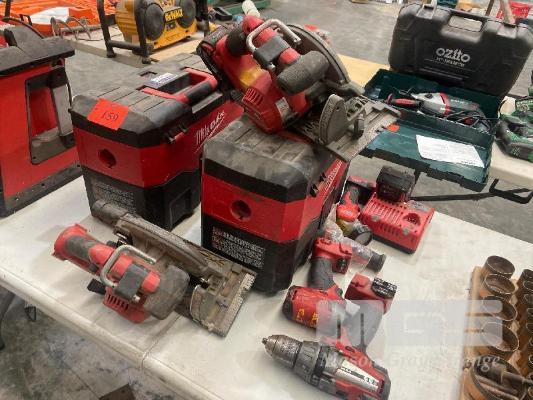 MILWAUKEE CORDLESS SETS INCLUDING 2 x SAWS, 2 x VACS, TEK GUN & CHARGER