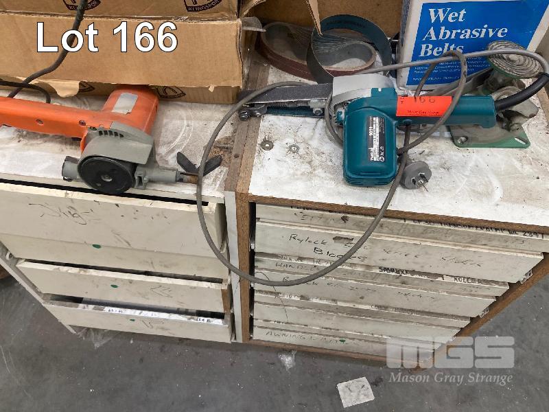 LARGE QUANTITY BELTS, SUITE SMALL BELT SANDERS & STANDS