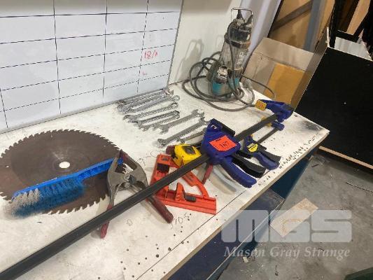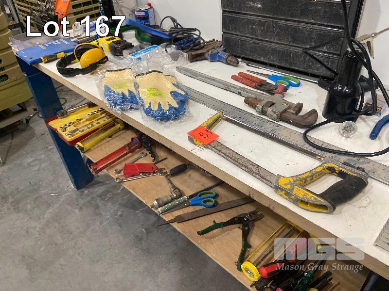 QUANTITY HAND TOOLS, DRILL BITS, FASTENERS, SQUARE & SAW