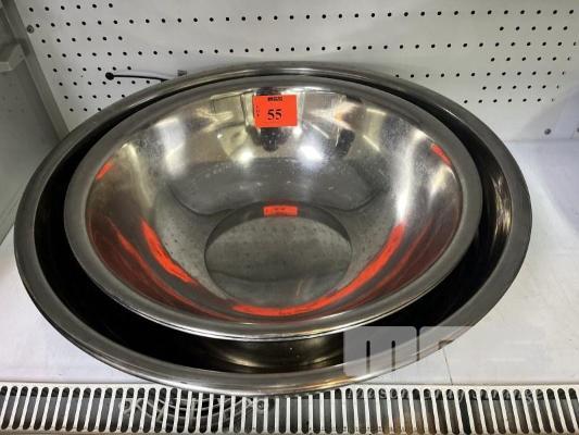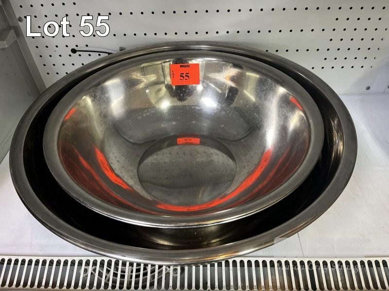 4 x LARGE STAINLESS STEEL BOWLS, 3 - 480mm (D), 1 - 560mm (D)