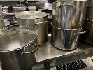 5 x ASSORTED STAINLESS STEEL POTS, 1 x 3 TIER STAINLESS STEEL STEAMER POT